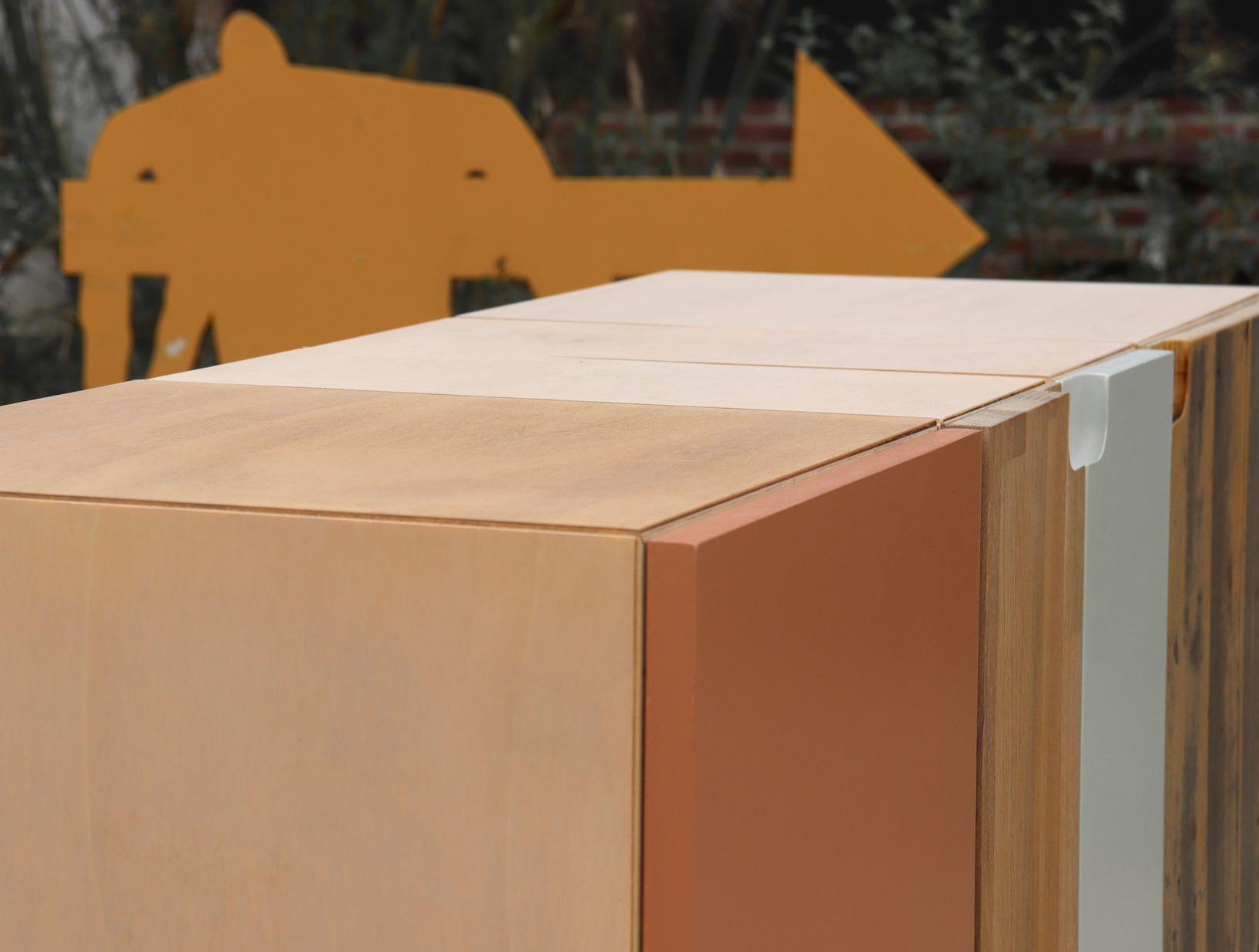 Bij het uitwerken van Timo wordt dit nog een stap verder gezet. De modulaire kasten zijn ontworpen voor eenvoudige montage én demontage. Het doel is om ook bij het einde van het leven van de kast een kleinere voetafdruk te geven. In elke stap van het proces worden zo duurzaam mogelijke materialen gebruikt én wordt er voor lokale en ethische productie gekozen.